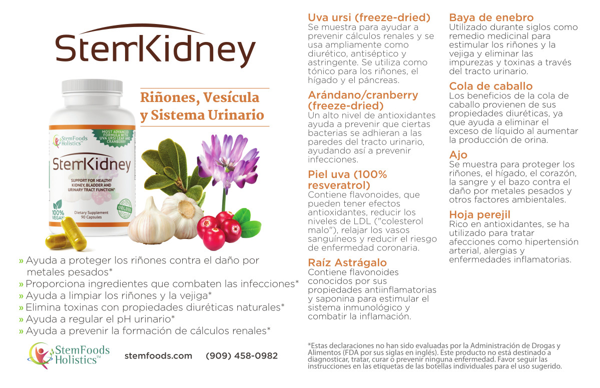StemKidney is especially formulated to support kidney and urinary tract health. The ingredients found in StemKidney are well known for their natural properties promoting healthy urinary tract and kidney function. We only use top quality ingredients in all our supplements, which are formulated for maximum benefits.