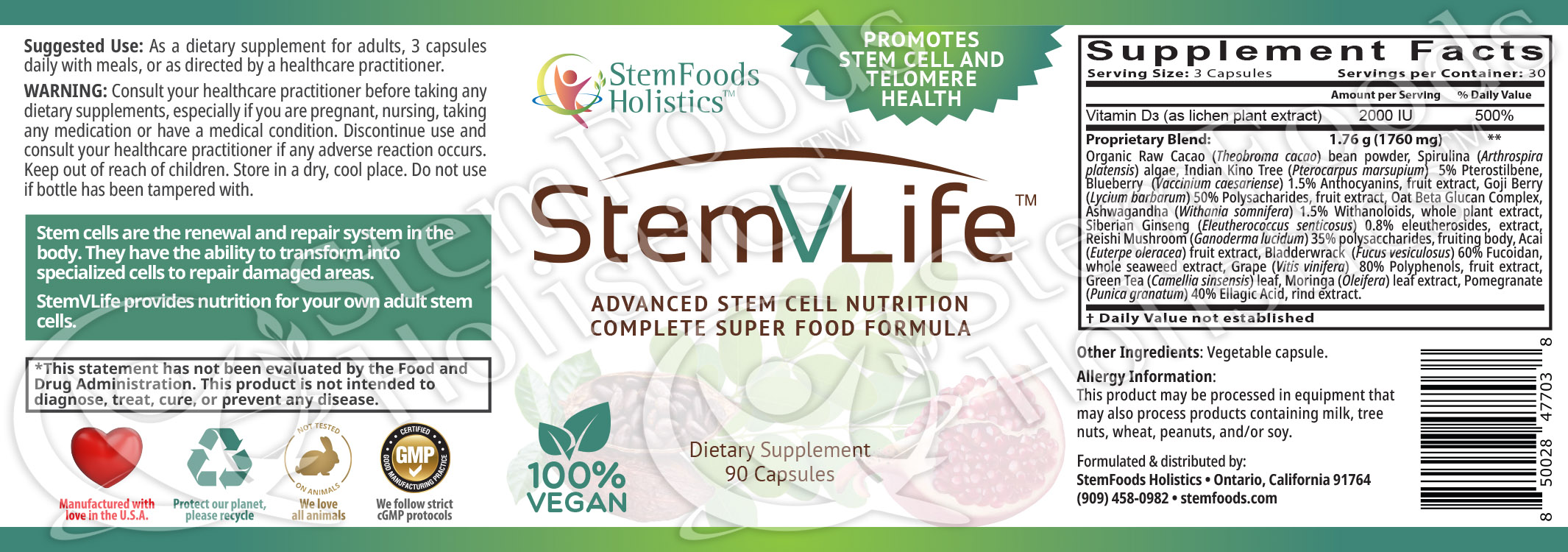 StemVLife is our most powerful stem cell formula designed to nourish, multiply and activate adult stem cells in the body. We use only the highest quality ingredients available. It is 100% natural as well as plant based and vegan.